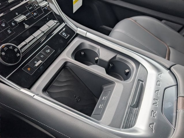 12 Speakers, 2nd Row Center Console with Two Cupholders, 2nd Row Outboard Captain's Chairs with Armrests, 3rd row seats: split-bench, 4-Wheel Disc Brakes, ABS Brakes, Air Conditioning, Alloy Wheels, AM/FM radio: SiriusXM w/360L, Anti-whiplash front head restraints, Apple CarPlay / Android Auto, Auto High-Beam Headlights, Auto tilt-away steering wheel, Auto-dimming door mirrors, Auto-dimming Rear-View mirror, Auto-leveling suspension, Automatic temperature control, Brake Assist, Bumpers: body-color, Captain's Chair Seat Package, Carpeted Floor Mats with Captain Chairs, Compass, Cross Bars, Delay-off Headlights, Driver door bin, Driver vanity mirror, Dual Front Impact Airbags, Dual Front Side Impact Airbags, Electronic Stability Control, Emergency communication system: NissanConnect Services, EZ Flex Second Row Seating System with One Touch Release, Four wheel independent suspension, Front Anti-Roll Bar, Front Bucket Seats, Front Center Armrest, Front Dual Zone A/C, Front reading lights, Fully Automatic Headlights, Garage door transmitter: myQ Connected Garage, Genuine wood dashboard insert, Heated door mirrors, Heated Front Bucket Seats, Heated Front Bucket Seats, Heated steering wheel, HVAC memory, Illuminated Entry, Knee airbag, Leather steering wheel, Low Tire Pressure Warning, Memory seat, Navigation system: Google Maps, Occupant sensing airbag, Outside temperature display, Overhead airbag, Overhead console, Panic alarm, Passenger door bin, Passenger vanity mirror, Power Door Mirrors, Power Driver Seat, Power Liftgate, Power Passenger Seat, Power Steering, Power Windows, Radio: NissanConnect with SiriusXM 360L, Rain Sensing Wipers, Rear Air Conditioning, Rear Anti-Roll Bar, Rear Bumper Protector, Rear reading lights, Rear seat center armrest, Rear window defroster, Rear window wiper, Reclining 3rd Row Seat, Remote Keyless Entry, Security system, Speed control, Speed-sensing steering, Speed-Sensitive Wipers, Splash Guards, Split Folding Rear Seat, Spoiler, Steering wheel memory, Steering Wheel Mounted Audio Controls, Tachometer, TailorFit Seat Trim, Telescoping steering wheel, Tilt steering wheel, Traction Control, Trip computer, Turn signal indicator mirrors, Variably intermittent wipers, Voltmeter, Wheels: 20 x 8.5J Machined and Painted Alloy.