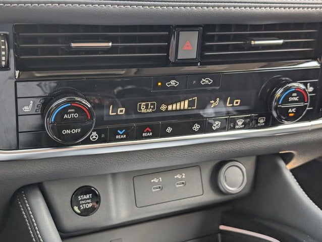 AWD, 10 Speakers, 4-Wheel Disc Brakes, ABS Brakes, Air Conditioning, Alloy Wheels, AM/FM radio: SiriusXM w/360L, Auto High-Beam Headlights, Auto-dimming Rear-View mirror, Automatic temperature control, Bose Premium Audio System, Brake Assist, Bumpers: body-color, Chrome Rear Bumper Protector, Delay-off Headlights, Driver door bin, Driver vanity mirror, Dual Front Impact Airbags, Dual Front Side Impact Airbags, Electronic Stability Control, Emergency communication system: NissanConnect Services, First Aid Kit, Floor Mats with 2-Piece Cargo Area Protector, Four wheel independent suspension, Front Anti-Roll Bar, Front Bucket Seats, Front Center Armrest, Front Dual Zone A/C, Front reading lights, Fully Automatic Headlights, Garage door transmitter: myQ Connected Garage, Head-Up Display, Heads-Up Display, Heated door mirrors, Heated Front Bucket Seats, Heated Front Bucket Seats, Heated Rear Seats, Heated steering wheel, Illuminated Entry, Knee airbag, Low Tire Pressure Warning, Memory seat, Motion-Activated Power Liftgate, Navigation system: Google Maps, Occupant sensing airbag, Outside temperature display, Overhead airbag, Overhead console, Panic alarm, Passenger door bin, Passenger vanity mirror, Platinum Premium Package, Power Door Mirrors, Power Driver Seat, Power Liftgate, Power Passenger Seat, Power Steering, Power Sunroof/Moonroof, Power Windows, Quilted Semi-Aniline Leather-Appointed Seat Trim, Radio data system, Radio: AM/FM NissanConnect with Navigation, Rear Anti-Roll Bar, Rear reading lights, Rear seat center armrest, Rear side impact airbag, Rear window defroster, Rear window wiper, Remote Keyless Entry, Roof Rail Cross Bars, Security system, Speed control, Speed-sensing steering, Speed-Sensitive Wipers, Split Folding Rear Seat, Spoiler, Steering Wheel Mounted Audio Controls, Tachometer, Telescoping steering wheel, Tilt steering wheel, Traction Control, Tri-Zone Automatic Temperature Control, Trip computer, Turn signal indicator mirrors, Variably intermittent wipers, Wheels: 19 Unique Dark Painted Aluminum Alloy, Wireless Apple CarPlay/Wireless Android Auto, AWD.
