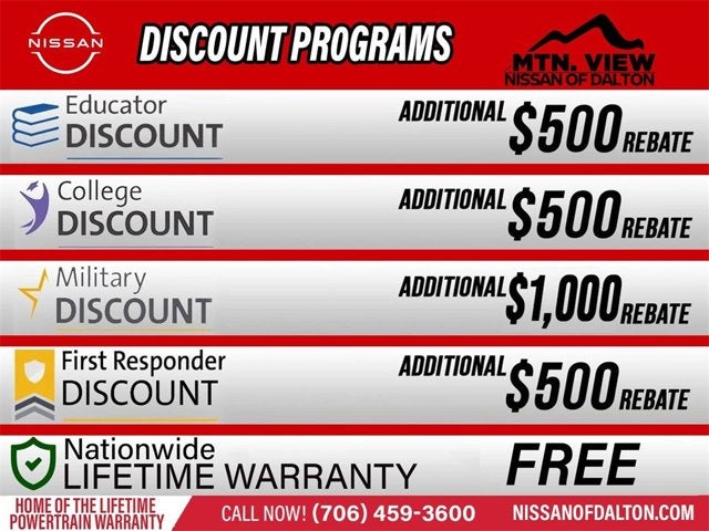 Discover the latest in automotive innovation at Mtn View Nissan, a premier destination for new Nissans and a proud member of the esteemed Mtn View Auto Group with locations in Chattanooga, Cleveland, and Dalton, GA. Explore our showroom to find the perfect new Nissan for you, backed by our commitment to excellence and renowned Nationwide Lifetime Warranty. Begin your journey with us today!