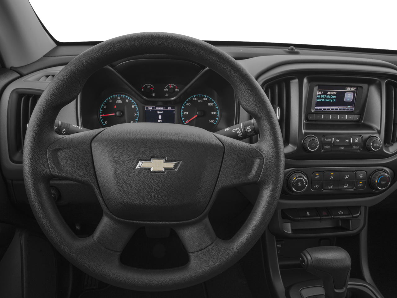 4-Wheel Disc Brakes, 4.10 Rear Axle Ratio, 6 Speakers, 6-Speaker Audio System Feature, ABS Brakes, Air Conditioning, All-Weather Floor Mats, AM/FM radio, Apple CarPlay / Android Auto, Body-Color Door Handles, Bumpers: body-color, Chrome Beltline Moldings, Cloth Seats, Delay-off Headlights, Driver 4-Way Power Seat Adjuster, Driver door bin, Dual Front Impact Airbags, Dual Front Side Impact Airbags, Electronic Automatic Cruise Control, Electronic Stability Control, Extended Range Remote Keyless Entry, Exterior Parking Camera Rear, EZ-Lift & Lower Tailgate, Front Anti-Roll Bar, Front Bucket Seats, Front Center Armrest, Front wheel independent suspension, Fully Automatic Headlights, Low Tire Pressure Warning, Occupant sensing airbag, Outside Power-Adjustable Body-Color Mirrors, Overhead airbag, Passenger door bin, Passenger vanity mirror, Power Driver Seat, Power Steering, Power Windows, Preferred Equipment Group 2WT, Premium audio system: Chevrolet MyLink, Radio data system, Radio: AM/FM w/7 Diagonal Color Touch Screen, Rear Body-Color Bumper, Rear Step Bumper, Speed-sensing steering, Split Folding Rear Seat, Spotter Mirror, Tachometer, Tilt steering wheel, Traction Control, Trip computer, Unauthorized Entry Theft-Deterrent System, Variably intermittent wipers, Wheels: 16 x 7 Ultra Silver Metallic Cast Alloy, Wheels: 16 x 7 Ultra Silver Metallic Steel, Work Truck Appearance Package, WT Convenience Package.