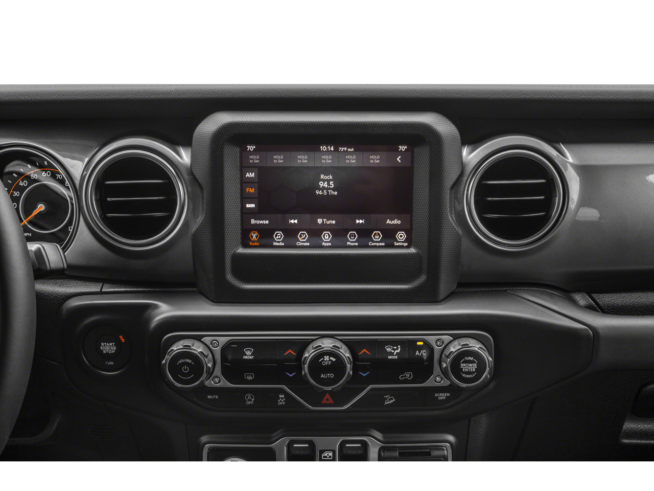 3.45 Rear Axle Ratio, 4-Wheel Disc Brakes, 8 Speakers, ABS Brakes, Air Conditioning, Alloy Wheels, AM/FM radio: SiriusXM, Apple CarPlay / Android Auto, Automatic temperature control, Black 3-Piece Hard Top, Brake Assist, Cloth Low-Back Bucket Seats, Compass, Delay-off Headlights, Driver door bin, Driver vanity mirror, Dual Front Impact Airbags, Dual Front Side Impact Airbags, Electronic Stability Control, Freedom Panel Storage Bag, Front Anti-Roll Bar, Front Bucket Seats, Front Center Armrest w/Storage, Front Dual Zone A/C, Front Fog Lights, Front reading lights, Fully Automatic Headlights, Garage door transmitter, Heated door mirrors, Heavy Duty Suspension w/Gas Shocks, Illuminated Entry, Integrated roll-over protection, Leather steering wheel, Low Tire Pressure Warning, Manufacturer's Statement of Origin (DISC), No Soft Top, Non-Lock Fuel Cap w/o Discriminator, Occupant sensing airbag, Outside temperature display, Panic alarm, ParkView Rear Back-Up Camera, Passenger door bin, Passenger vanity mirror, Power Door Mirrors, Power Steering, Power Windows, Quick Order Package 28G, Radio data system, Radio: Uconnect 4 w/7 Display, Rear Anti-Roll Bar, Rear reading lights, Rear Window Defroster, Rear Window Wiper/Washer, Remote Keyless Entry, Security system, Speed control, Split Folding Rear Seat, Steering Wheel Mounted Audio Controls, Tachometer, Telescoping steering wheel, Tilt steering wheel, Traction Control, Trip computer, Variably intermittent wipers, Voltmeter, Wheels: 18 x 7.5 Polished w/Gray Spokes.