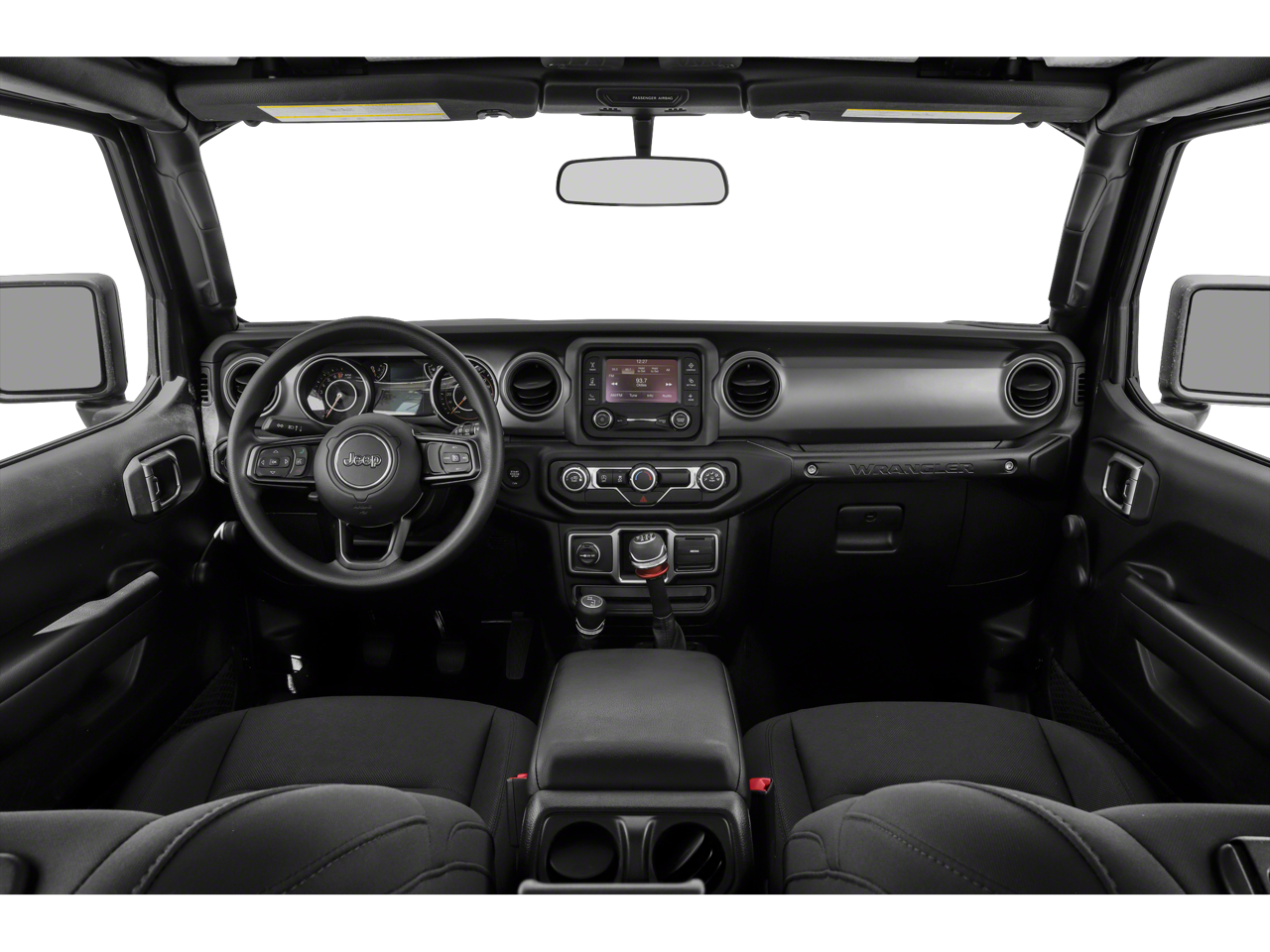 3.45 Rear Axle Ratio, 4-Wheel Disc Brakes, 8 Speakers, ABS Brakes, AM/FM radio, Brake Assist, Cloth Low-Back Bucket Seats, Compass, Delay-off Headlights, Driver door bin, Driver vanity mirror, Dual Front Impact Airbags, Dual Front Side Impact Airbags, Electronic Stability Control, Front Anti-Roll Bar, Front Bucket Seats, Front Center Armrest w/Storage, Front Fog Lights, Front reading lights, Integrated roll-over protection, Low Tire Pressure Warning, Non-Lock Fuel Cap w/o Discriminator, Normal Duty Suspension, Occupant sensing airbag, Outside temperature display, ParkView Rear Back-Up Camera, Passenger door bin, Passenger vanity mirror, Power Steering, Radio data system, Radio: Uconnect 3 w/5 Display, Rear Anti-Roll Bar, Rear reading lights, Speed control, Steering Wheel Mounted Audio Controls, Tachometer, Telescoping steering wheel, Tilt steering wheel, Traction Control, Trip computer, Variably intermittent wipers, Wheels: 17 x 7.5 Black Steel Styled.