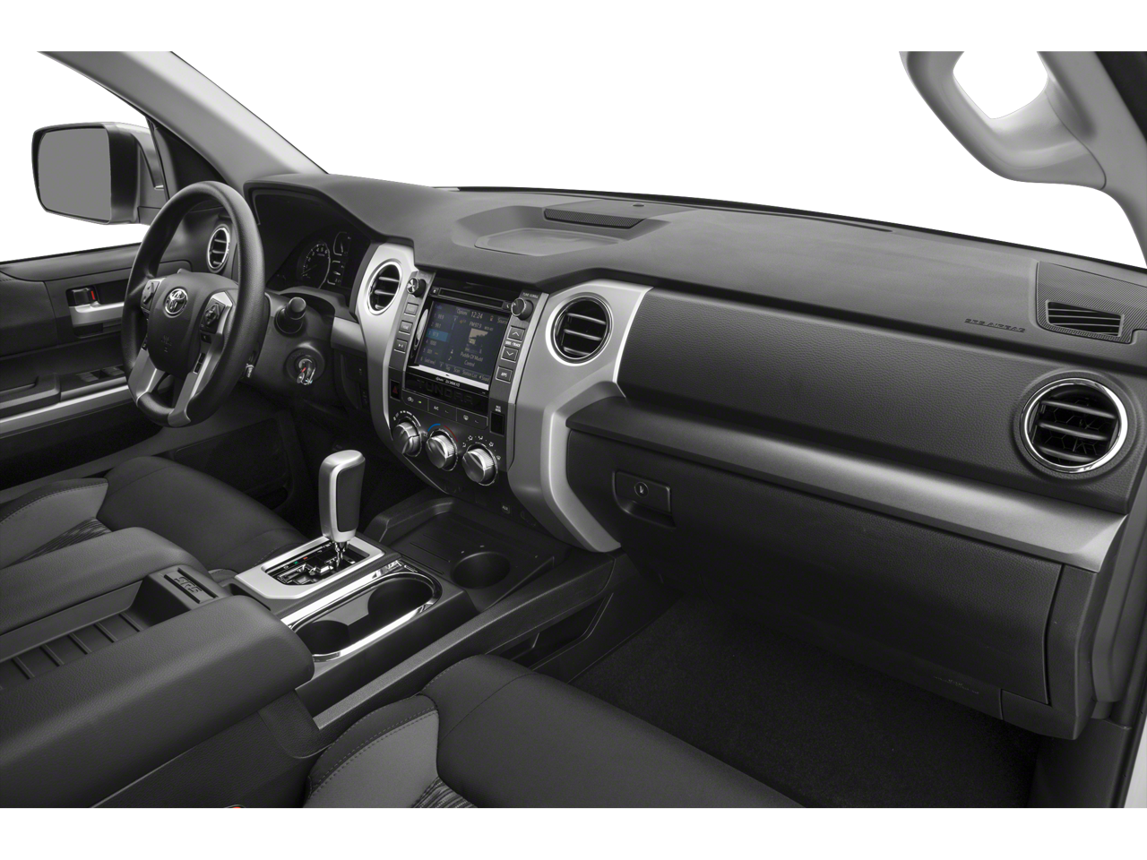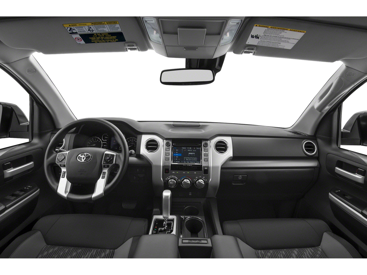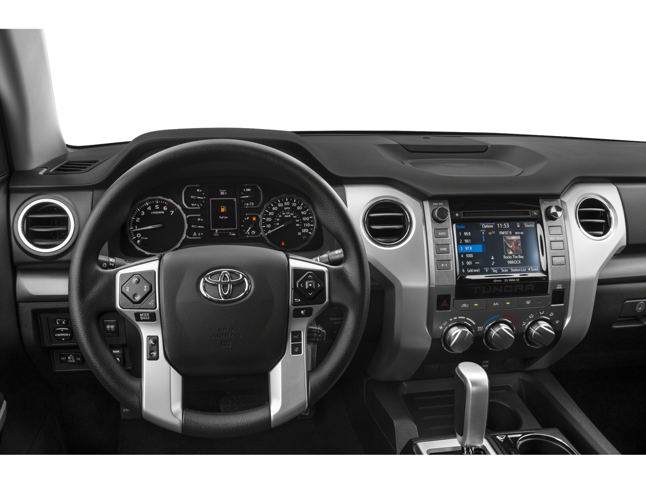 4WD, Graphite w/Fabric Seat Trim, 18 x 8J Styled Steel Wheels, 3-Passenger Front Bench Seat, 38 Gallon Fuel Tank Capacity, 4-Wheel Disc Brakes, 4.30 Axle Ratio, 6 Speakers, ABS Brakes, Air Conditioning, AM/FM radio: SiriusXM, Anti-Theft Immobilizer w/Alarm, Auto High-Beam Headlights, Auto-Dimming Rear-View Mirror, Auto-dimming Rear-View mirror, Brake Assist, CD player, Cloth Seat Trim, Compass, Deck Rail System, Delay-off Headlights, Driver door bin, Driver vanity mirror, Dual Front Impact Airbags, Dual Front Side Impact Airbags, Electronic Stability Control, Exterior Parking Camera Rear, Front Anti-Roll Bar, Front Bucket Seats, Front Center Armrest w/Storage, Front Fog Lights, Front reading lights, Front wheel independent suspension, Fully Automatic Headlights, Garage door transmitter: HomeLink, Heated door mirrors, HomeLink Universal Transceiver, Illuminated Entry, Knee airbag, Leather Shift Knob, Low Tire Pressure Warning, Occupant sensing airbag, Outside temperature display, Overhead airbag, Overhead console, Panic alarm, Passenger door bin, Passenger vanity mirror, Power Door Mirrors, Power Steering, Power Windows, Radio: Entune Audio Plus AM/FM/HD Radio w/CD, Radio: Entune Premium Audio AM/FM w/HD Radio & CD, Rear reading lights, Rear seat center armrest, Rear Step Bumper, Rear window defroster, Remote Keyless Entry, Speed control, Speed-sensing steering, Split Folding Rear Seat, Tachometer, Tilt steering wheel, Traction Control, TRD Shift Knob, Trip computer, Variably intermittent wipers, Voltmeter, 4WD, Graphite w/Fabric Seat Trim.