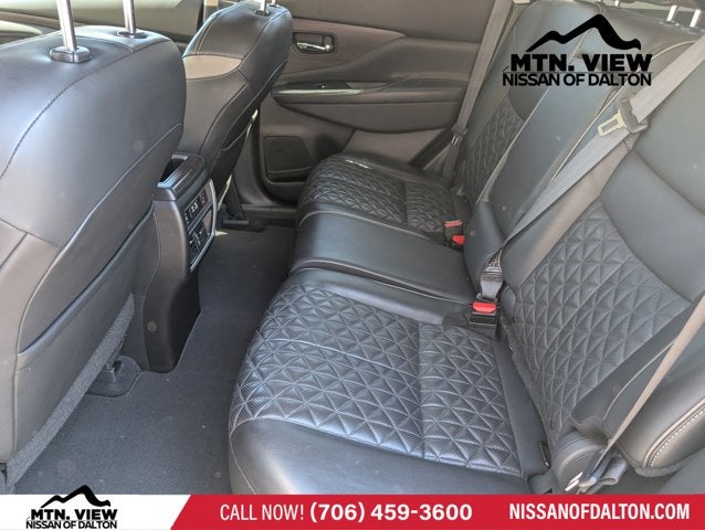 CVT with Xtronic, 11 Speakers, 4-Wheel Disc Brakes, 4.667 Axle Ratio, ABS Brakes, Air Conditioning, Alloy Wheels, AM/FM radio: SiriusXM, AM/FM/CD/MP3/WMA Audio System, Auto High-Beam Headlights, Auto tilt-away steering wheel, Auto-dimming Rear-View mirror, Automatic temperature control, Blind Spot Warning, Brake Assist, Bumpers: body-color, Cargo Area Protector, Cargo Net, Cargo Package, Carpeted Floor Mats & Carpeted Cargo Mat, CD player, Child-Seat-Sensing Airbag, Climate-Controlled Front Bucket Seats, Compass, Delay-off Headlights, Driver door bin, Driver vanity mirror, Dual Front Impact Airbags, Dual Front Side Impact Airbags, Electronic Stability Control, Emergency communication system: NissanConnect Services (first 6 months included), Exterior Parking Camera Rear, First Aid Kit, Four wheel independent suspension, Front Anti-Roll Bar, Front Bucket Seats, Front Center Armrest, Front Dual Zone A/C, Front Fog Lights, Front reading lights, Fully Automatic Headlights, Garage door transmitter: HomeLink, Heated door mirrors, Heated Front Bucket Seats, Heated Rear Seats, Heated steering wheel, Illuminated Entry, Illuminated Kick Plates, Illuminated Kick Plates (PIO), Knee airbag, Low Tire Pressure Warning, Memory seat, Navigation system: NissanConnect Navigation, NissanConnect featuring Apple CarPlay and Android Auto, NissanConnect Services Powered By SiriusXM, Occupant sensing airbag, Outside temperature display, Overhead airbag, Overhead console, Panic alarm, Passenger door bin, Passenger vanity mirror, Power Door Mirrors, Power Driver Seat, Power Liftgate, Power Passenger Seat, Power Steering, Power Sunroof/Moonroof, Power Windows, Radio data system, Rear Anti-Roll Bar, Rear Bumper Protector, Rear reading lights, Rear seat center armrest, Rear side impact airbag, Rear window defroster, Rear window wiper, Remote Keyless Entry, Retractable Cargo Cover, Roof Rack: Racks Only, Security system, Semi-Aniline Leather-Appointed Seat Trim, Speed control, Speed-sensing steering, Speed-Sensitive Wipers, Splash Guards, Split Folding Rear Seat, Spoiler, Steering wheel memory, Steering Wheel Mounted Audio Controls, Tachometer, Telescoping steering wheel, Tilt steering wheel, Traction Control, Trip computer, Turn signal indicator mirrors, Variably intermittent wipers, Ventilated Front Seats, Wheels: 20 Dark Hyper Silver, CVT with Xtronic.