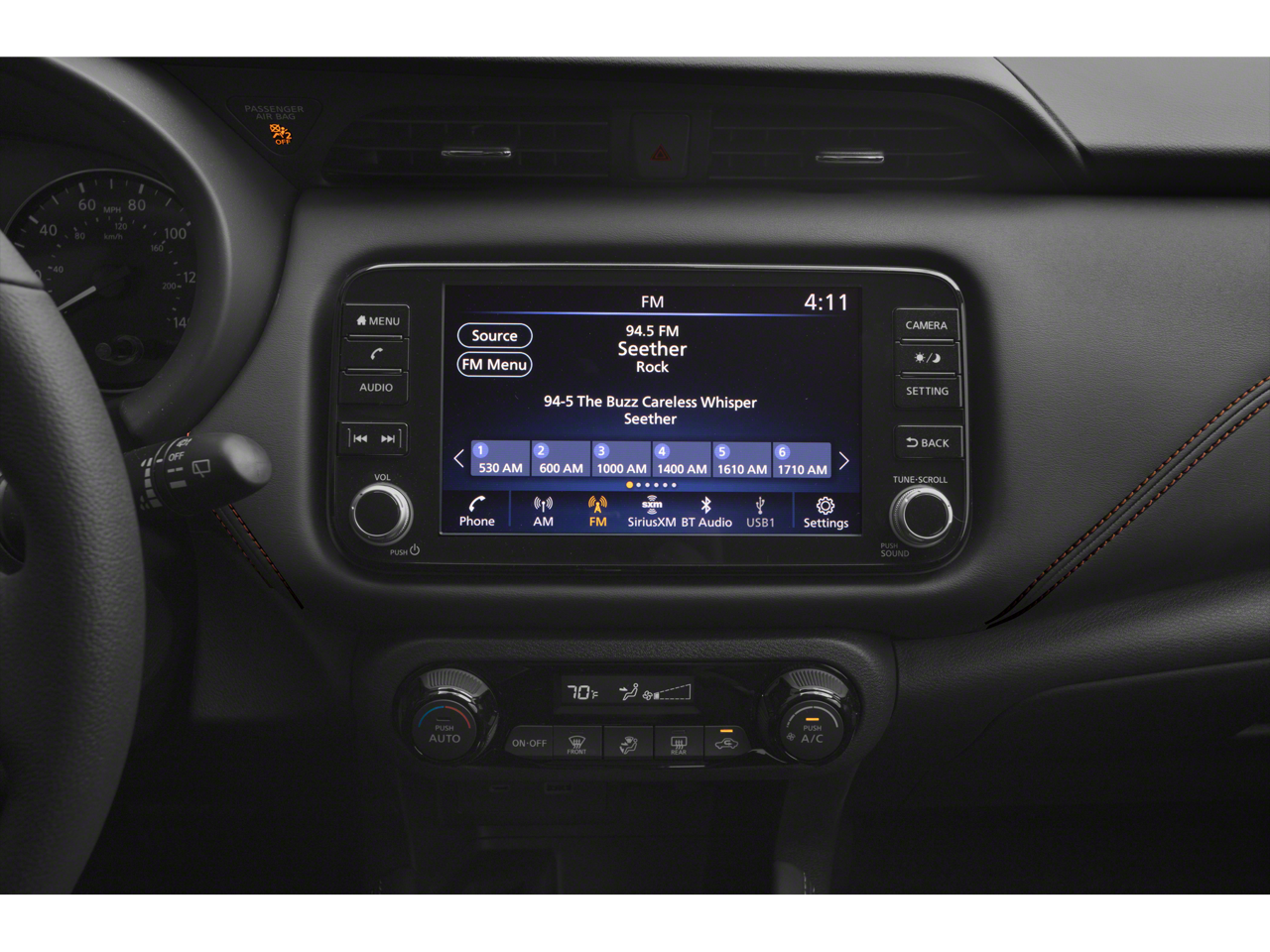 3.927 Axle Ratio, 4-Wheel Disc Brakes, 6 Speakers, ABS Brakes, Air Conditioning, Alloy Wheels, AM/FM radio: SiriusXM, Apple CarPlay / Android Auto, Auto High-Beam Headlights, Auto-dimming Rear-View mirror, Automatic temperature control, Blind Spot Warning, Bose Personal Plus Audio System, Brake Assist, Bumpers: body-color, Carpeted Floor Mats w/Cargo Mat, Cloth Seats, Compass, Delay-off Headlights, Door Pocket Light, Driver door bin, Driver vanity mirror, Dual Front Impact Airbags, Dual Front Side Impact Airbags, Electronic Stability Control, Exterior Ground Lighting, Exterior Parking Camera Rear, Frameless Auto-Dimming Mirror, Front Anti-Roll Bar, Front Bucket Seats, Front Center Armrest, Front Fog Lights, Front reading lights, Front wheel independent suspension, Fully Automatic Headlights, Heated door mirrors, Heated Front Seats, Heated Steering Wheel, Illuminated Entry, Illuminated Kick Plates, Interior Ambient Lighting, Interior Electronics Package, Knee airbag, Low Tire Pressure Warning, NissanConnect Services, Occupant sensing airbag, Outside temperature display, Overhead airbag, Panic alarm, Passenger door bin, Passenger vanity mirror, Power Door Mirrors, Power Steering, Power Windows, Premium Package, Prima-Tex Appointed Seat Trim, Radio data system, Radio: AM/FM Audio System, Rear Parking Sensors, Rear reading lights, Rear side impact airbag, Rear window defroster, Rear window wiper, Remote Keyless Entry, Roof Rack: Racks Only, Security System, Speed control, Splash Guards Grain (4 Piece), Split Folding Rear Seat, Sport steering wheel, SR Rear Roof Spoiler, Steering Wheel Mounted Audio Controls, Tachometer, Technology Package, Telescoping steering wheel, Tilt steering wheel, Tonneau Cover, Traction Control, Trip computer, Turn signal indicator mirrors, Universal Remote, Variably intermittent wipers, Wheels: 17 5-Hole Alloy, Wheels: 17 Black Alloy.