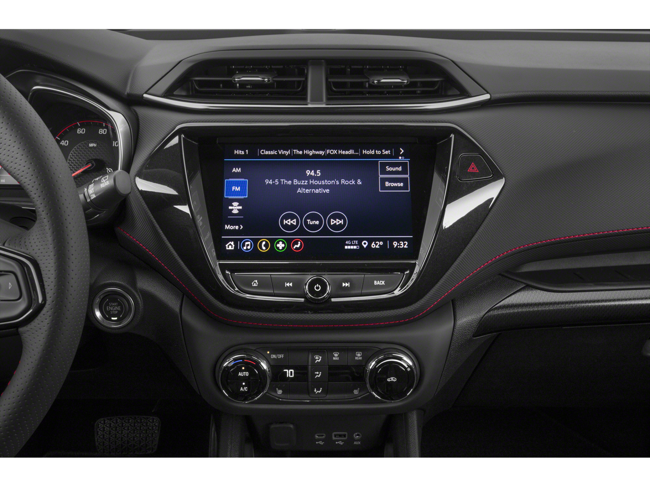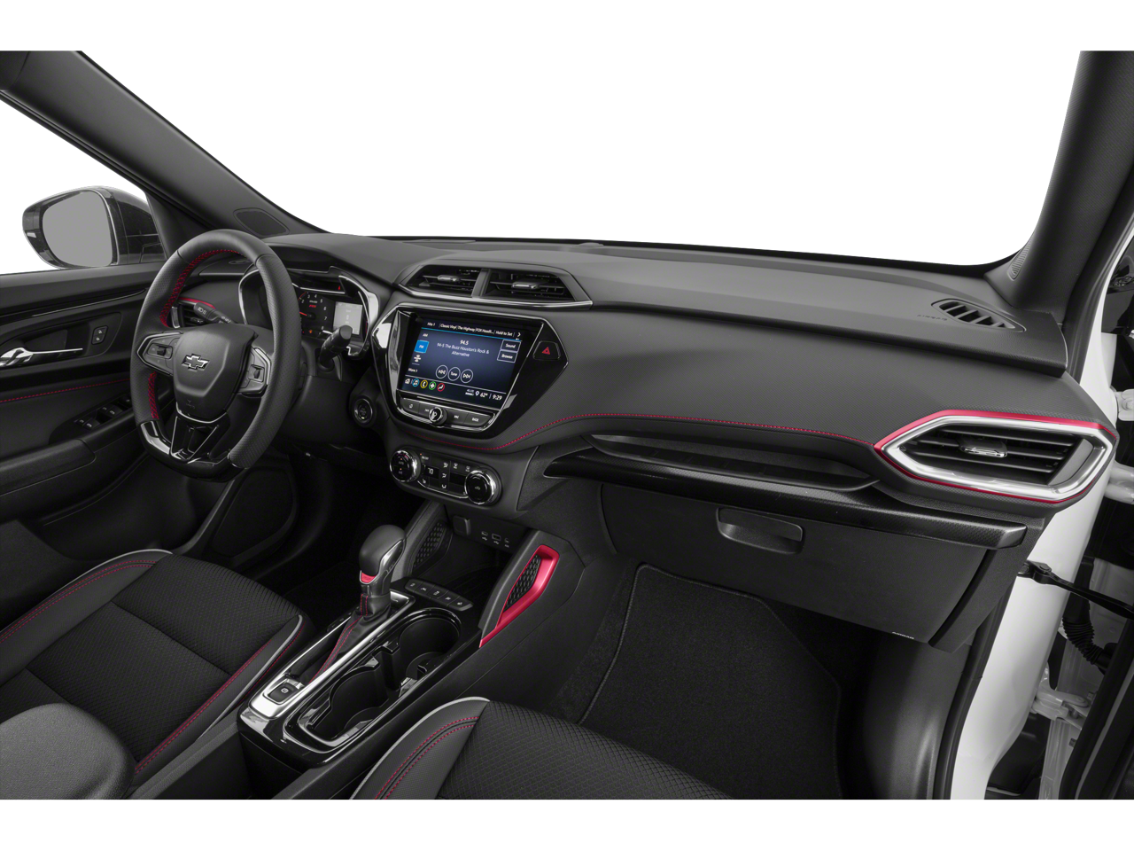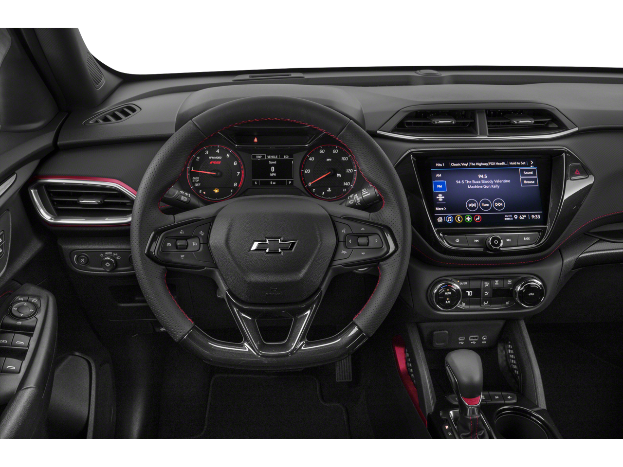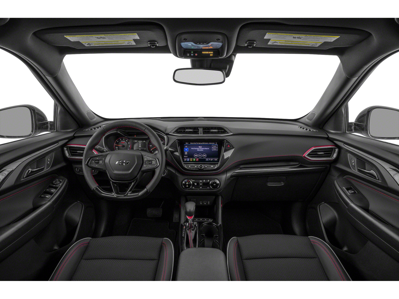 1 Type-A & 1 Type-C USB Charging-Only Ports, 120-Volt Power Outlet, 2-Way Adjustable Front Head Restraints, 2-Way Power Driver Lumbar Seat Adjuster, 3.17 Axle Ratio, 4-Way Manual Front Passenger Seat Adjuster, 4-Wheel Disc Brakes, 6 Speakers, 6-Speaker Audio System Feature w/Amplifier, 7 Diagonal Color Touchscreen, 8-Way Power Driver Seat Adjuster, 8 Diagonal Color Touchscreen Display, ABS Brakes, Air Conditioning, Alloy Wheels, AM/FM radio: SiriusXM, Auto High-Beam Headlights, Brake Assist, Bumpers: body-color, Cabin Humidity Sensor, Cloth w/Leatherette Seat Trim, Compass, Confidence II Package, Convenience Package, Crimson Metallic Two-Tone Roof, Delay-off Headlights, Driver & Front Passenger Illuminated Vanity Mirrors, Driver door bin, Driver vanity mirror, Dual Front Impact Airbags, Dual Front Side Impact Airbags, Dual-Pane Panoramic Power Sunroof, Electronic Stability Control, Emergency communication system: OnStar and Chevrolet connected services capable, Exterior Parking Camera Rear, Flat-Folding Front Passenger Seatback, Front Anti-Roll Bar, Front Bucket Seats, Front Center Armrest, Front Fog Lights, Front reading lights, Front wheel independent suspension, Fully Automatic Headlights, Hands-Free Power Programmable Liftgate, Heated door mirrors, Heated Driver & Front Passenger Seats, Heated Front Bucket Seats, Heated Steering Wheel, Heated steering wheel, Illuminated Entry, Inside Rear-View Auto-Dimming Mirror, Knee airbag, Leather Shift Knob, Leather steering wheel, Low Tire Pressure Warning, Not Equipped w/Rear Park Assist, Occupant sensing airbag, Overhead airbag, Overhead console, Panic alarm, Passenger door bin, Passenger vanity mirror, Power Door Mirrors, Power Driver Seat, Power Steering, Power Windows, Preferred Equipment Group 1RS, Radio data system, Radio: Chevrolet Infotainment 3 System, Rear Park Assist, Rear seat center armrest, Rear side impact airbag, Rear window defroster, Rear window wiper, Remote Keyless Entry, Ride & Handling Suspension, Security system, Single-Zone Auto Climate Control Air Conditioning, SiriusXM Radio, Speed control, Split Folding Rear Seat, Spoiler, Steering Wheel Mounted Audio Controls, Sun & Liftgate Package, Tachometer, Telescoping steering wheel, Tilt steering wheel, Traction Control, Trip computer, Variably intermittent wipers, Wheels: 18 High Gloss Black Machined Aluminum, Wireless Apple CarPlay/Android Auto.