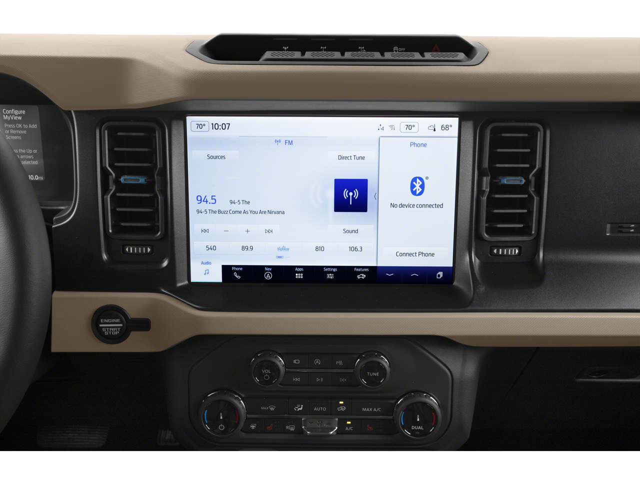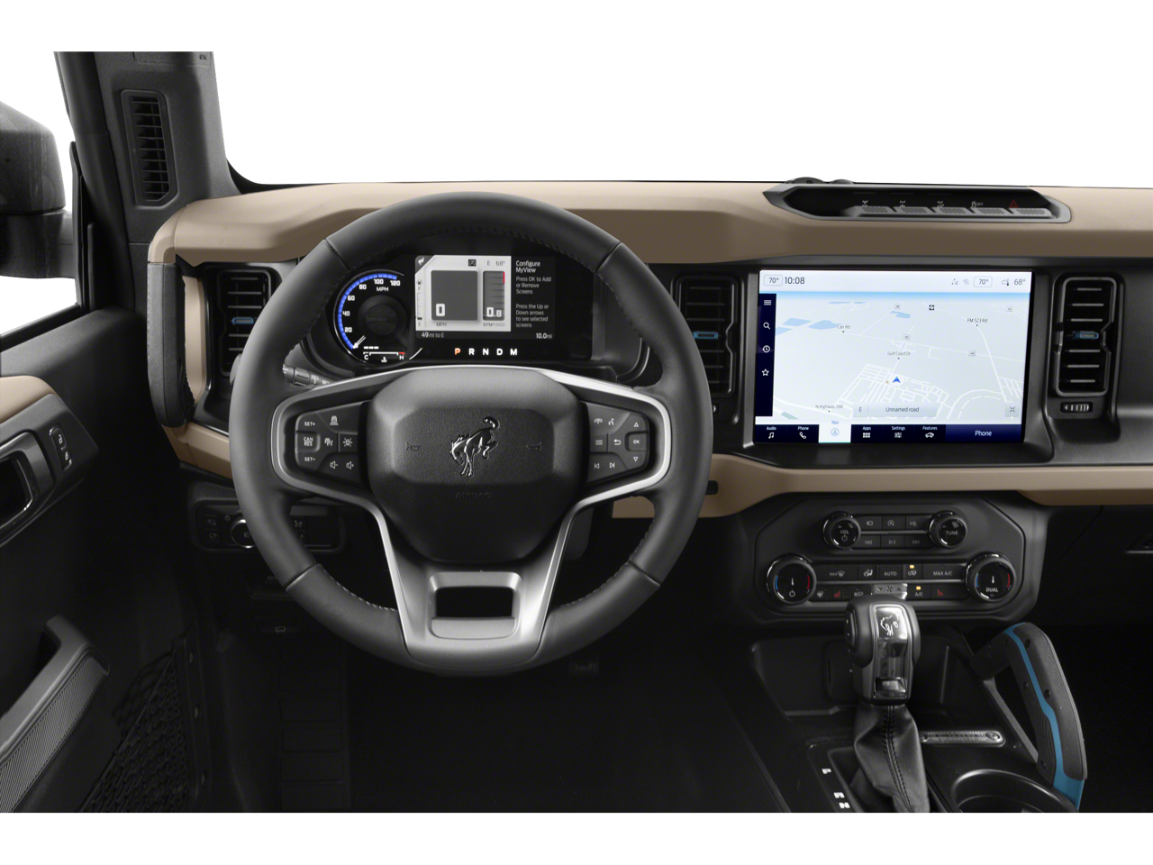 * Bluetooth®/Handsfree Calling *, * USB Adapter *, Bronco Wildtrak 4x4, 4D Sport Utility, 2.7L EcoBoost V6, 10-Speed Automatic, 4WD, Shadow Black, Black Cloth, 12 LCD Capacitive Touchscreen w/Swipe Capability, 360-Degree Camera, Additional Sound Deadening, Equipment Group 353A High Package, Front Parking Sensors, Information on Demand Panel, Navigation system: Connected Navigation, Sideview Mirrors, 4-Wheel Disc Brakes, 4.7 Axle Ratio, 7 Speakers, ABS brakes, Air Conditioning, Alloy wheels, AM/FM radio: SiriusXM with 360L, AM/FM Stereo, Auto High-beam Headlights, Auto-dimming Rear-View mirror, Automatic temperature control, Brake assist, Compass, Connected Built-In Navigation, Connected Navigation, Delay-off headlights, Driver door bin, Driver vanity mirror, Dual front impact airbags, Dual front side impact airbags, Dual Tops, Electronic Stability Control, Emergency communication system: 911 Assist, Exterior Parking Camera Rear, Front anti-roll bar, Front Bucket Seats, Front Center Armrest, Front dual zone A/C, Front fog lights, Front License Plate Bracket, Front reading lights, Front wheel independent suspension, Fully automatic headlights, Heated door mirrors, Heated front seats, Heated Leather-Trimmed/Vinyl Bucket Seats, Illuminated entry, Integrated roll-over protection, Leather Shift Knob, Low tire pressure warning, Occupant sensing airbag, Outside temperature display, Overhead airbag, Overhead console, Panic alarm, Passenger door bin, Passenger vanity mirror, Power door mirrors, Power steering, Power windows, Radio data system, Radio: 6 Speakers w/Subwoofer Delete, Remote keyless entry, Security system, SiriusXM Radio w/360L, Speed control, Split folding rear seat, Steering wheel mounted audio controls, SYNC 4, Tachometer, Telescoping steering wheel, Tilt steering wheel, Traction control, Trip computer, Variably intermittent wipers, Voltmeter, Wheels: 17 Black High Gloss-Painted Aluminum, Bronco Wildtrak 4x4, 4D Sport Utility, 2.7L EcoBoost V6, 10-Speed Automatic, 4WD, Shadow Black, Black Cloth, 12 LCD Capacitive Touchscreen w/Swipe Capability, 360-Degree Camera, Additional Sound Deadening, Equipment Group 353A High Package, Front Parking Sensors, Information on Demand Panel, Navigation system: Connected Navigation, Sideview Mirrors.