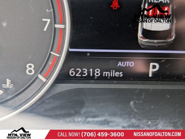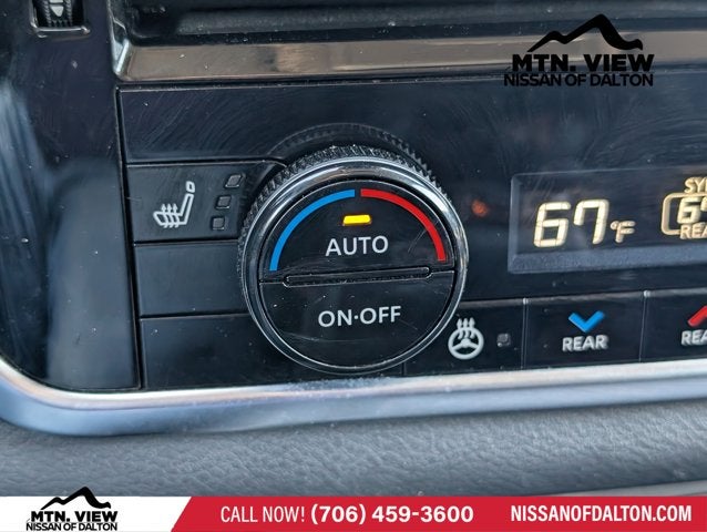 AWD, 19 Aluminum Alloy Wheels, 4-Wheel Disc Brakes, 5.604 Axle Ratio, 6 Speakers, ABS Brakes, Air Conditioning, Alloy Wheels, AM/FM Radio, AM/FM radio: SiriusXM, Auto High-Beam Headlights, Auto-dimming Rear-View mirror, Automatic temperature control, Black Splash Guards (Set of 4), Brake Assist, Bumpers: body-color, Chrome Rear Bumper Protector, Delay-off Headlights, Driver door bin, Driver vanity mirror, Dual Front Impact Airbags, Dual Front Side Impact Airbags, Electronic Stability Control, Emergency communication system: NissanConnect Services, Floor Mats w/2-Piece Cargo Area Protector, Four wheel independent suspension, Frameless Rearview Mirror w/Universal Remote, Front Anti-Roll Bar, Front Bucket Seats, Front Center Armrest, Front Dual Zone A/C, Front reading lights, Fully Automatic Headlights, Heated door mirrors, Heated Front Bucket Seats, Heated Front Bucket Seats, Heated steering wheel, Illuminated Entry, Illuminated Kick Plates, Knee airbag, Leather steering wheel, Leather-Appointed Seat Trim, Low Tire Pressure Warning, Memory seat, NissanConnect featuring Apple CarPlay and Android Auto, Occupant sensing airbag, Outside temperature display, Overhead airbag, Overhead console, Panic alarm, Passenger door bin, Passenger vanity mirror, Power Door Mirrors, Power Driver Seat, Power Liftgate, Power Passenger Seat, Power Steering, Power Sunroof/Moonroof, Power Windows, Radio data system, Radio: AM/FM NissanConnect w/Navigation, Rear Anti-Roll Bar, Rear Parking Sensors, Rear reading lights, Rear seat center armrest, Rear side impact airbag, Rear window defroster, Rear window wiper, Remote Keyless Entry, Security system, SL Premium Package, Speed control, Speed-Sensitive Wipers, Split Folding Rear Seat, Spoiler, Steering Wheel Mounted Audio Controls, Tachometer, Telescoping steering wheel, Tilt steering wheel, Traction Control, Trip computer, Turn signal indicator mirrors, Variably intermittent wipers, AWD.