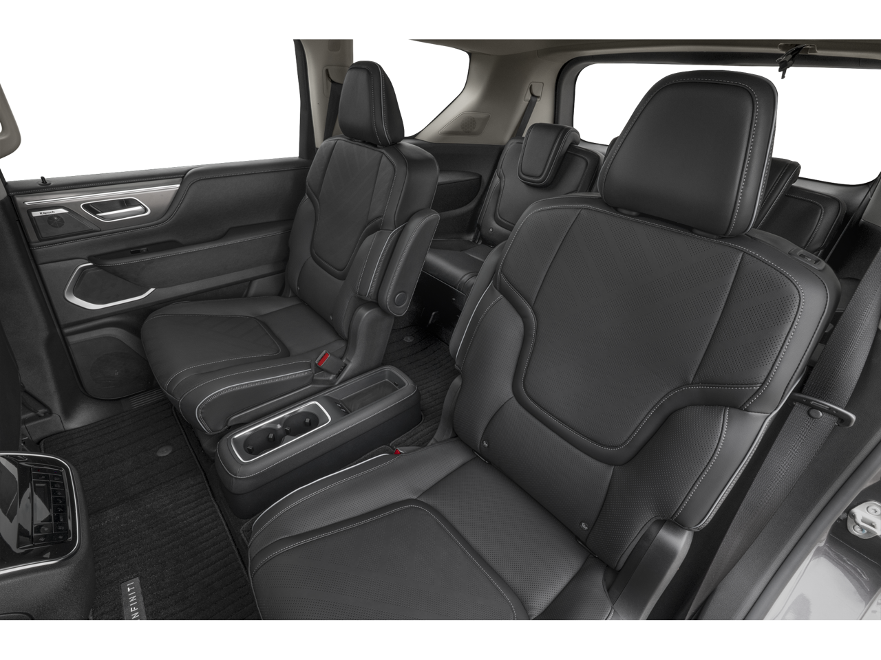 * Bluetooth®/Handsfree Calling *, * USB Adapter *, QX80 LUXE, 4D Sport Utility, 3.5L V6 DOHC 24V, 9-Speed Automatic, RWD, Grand Blue, Graphite Leather, Navigation system: Google Built-in, Split Bench Seat Package, 14 Speakers, 3rd row seats: bench, 4-Wheel Disc Brakes, ABS brakes, Adaptive suspension, Air Conditioning, Alloy wheels, AM/FM radio: SiriusXM with 360L, Anti-whiplash front head restraints, Apple CarPlay/Android Auto, Audio memory, Auto High-beam Headlights, Auto tilt-away steering wheel, Auto-dimming door mirrors, Auto-dimming Rear-View mirror, Auto-leveling suspension, Automatic temperature control, Brake assist, Bumpers: body-color, Center Front Spoiler, Climate Controlled Front Bucket Seats, Compass, Delay-off headlights, Driver door bin, Driver vanity mirror, Dual front impact airbags, Dual front side impact airbags, Electronic Stability Control, Emergency communication system: INFINITI InTouch, Four wheel independent suspension, Front anti-roll bar, Front Bucket Seats, Front Center Armrest, Front dual zone A/C, Front reading lights, Fully automatic headlights, Garage door transmitter: myQ Connected Garage, Heads-Up Display, Heated door mirrors, Heated front seats, Heated rear seats, Heated steering wheel, HVAC memory, Illuminated entry, Knee airbag, Leather Seating Surfaces, Leather steering wheel, Literature Kit, Low tire pressure warning, Memory seat, Occupant sensing airbag, Outside temperature display, Overhead airbag, Overhead console, Panic alarm, Passenger door bin, Passenger vanity mirror, Power door mirrors, Power driver seat, Power Liftgate, Power moonroof, Power passenger seat, Power steering, Power windows, Premium Paint, Radiant Front & Rear Doors Illuminated Kick Plates, Radio data system, Radio: Klipsch Premium Audio System w/14 Speakers, Rain sensing wipers, Rear air conditioning, Rear anti-roll bar, Rear reading lights, Rear seat center armrest, Rear window defroster, Rear window wiper, Reclining 3rd row seat, Remote keyless entry, Security system, Speed control, Speed-sensing steering, Split folding rear seat, Spoiler, Steering wheel memory, Steering wheel mounted audio controls, Tachometer, Telescoping steering wheel, Tilt steering wheel, Traction control, Trip computer, Turn signal indicator mirrors, Variably intermittent wipers, Ventilated front seats, Ventilated rear seats, Wheels: 22 x 8 Cast Aluminum Alloy, QX80 LUXE, 4D Sport Utility, 3.5L V6 DOHC 24V, 9-Speed Automatic, RWD, Grand Blue, Graphite Leather, Navigation system: Google Built-in, Split Bench Seat Package.
